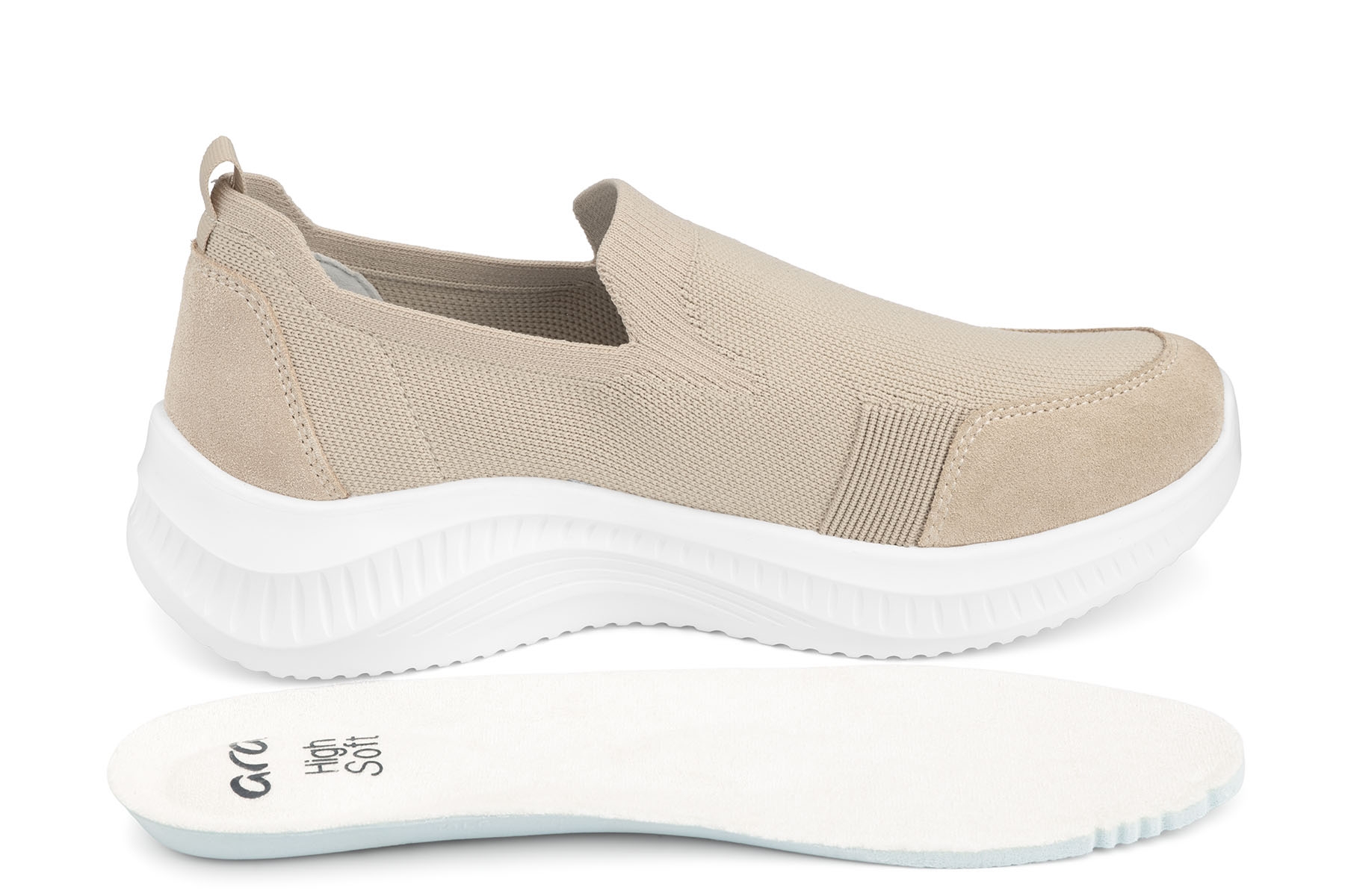 Ara Seattle 12-23206 08 H  wygodne półbuty damskie wykonane z przewiewnej, elastycznej tkaniny; wyjmowane, amortyzujące wkładki High Soft Bamboo z pelotą na płaskostopie poprzeczne; bardzo lekkie, elastyczne, antypoślizgowe podeszwy; tęgość H - polecane na stopy szersze.