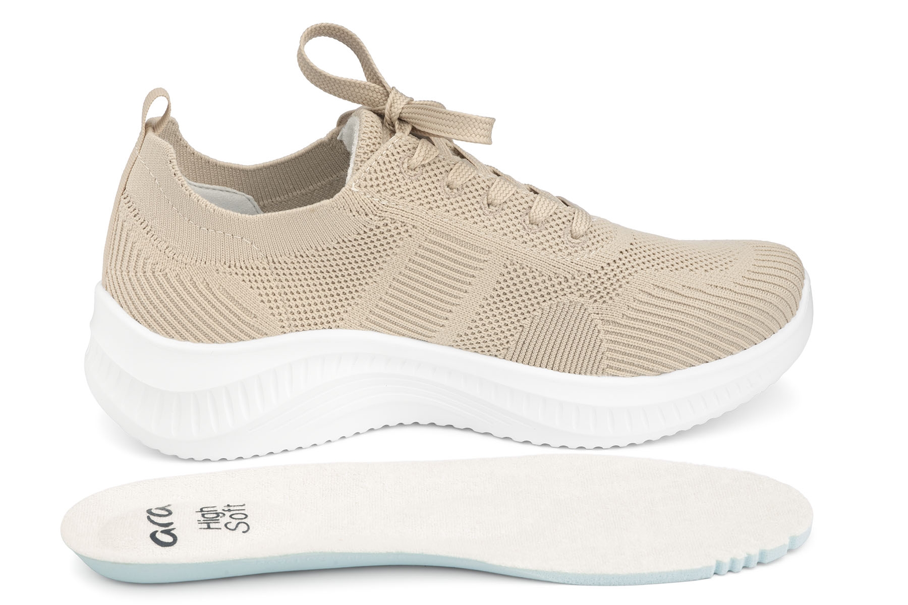 Ara Seattle 12-23202 08 H  wygodne półbuty damskie wykonane z przewiewnej, elastycznej tkaniny; wyjmowane, amortyzujące wkładki High Soft Bamboo z pelotą na płaskostopie poprzeczne; bardzo lekkie, elastyczne, antypoślizgowe podeszwy; tęgość H - polecane na stopy szersze.