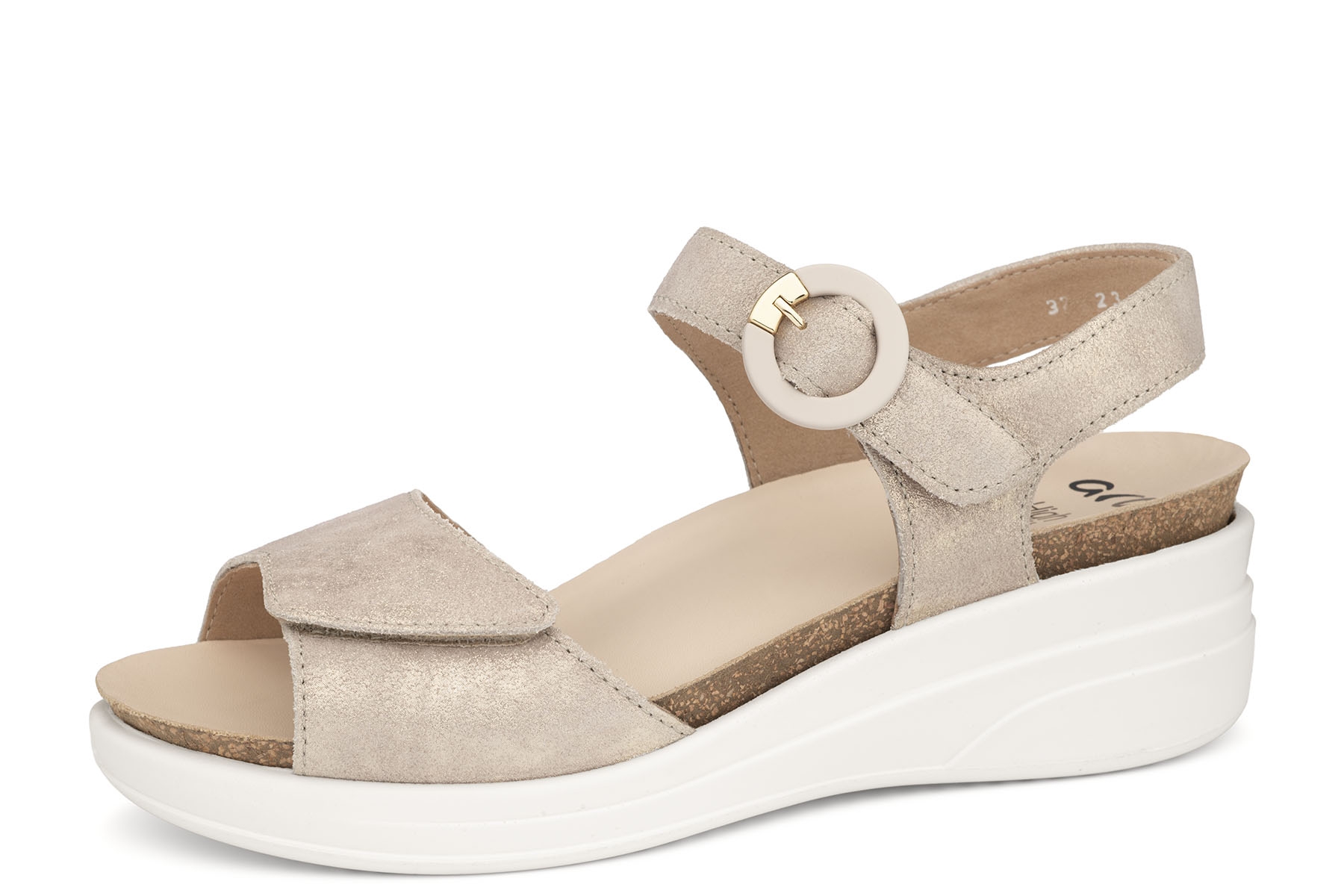 Ara Zurich-S 12-47004 05H High Soft wygodne sandały damskie wykonane ze skóry naturalnej; wyjmowane, amortyzujące wkładki - HighSoft z pelotą na płaskostopie poprzeczne; regulacja paskami na rzep; lekkie, elastyczne, antypoślizgowe podeszwy; tęgość H - na stopy szersze.