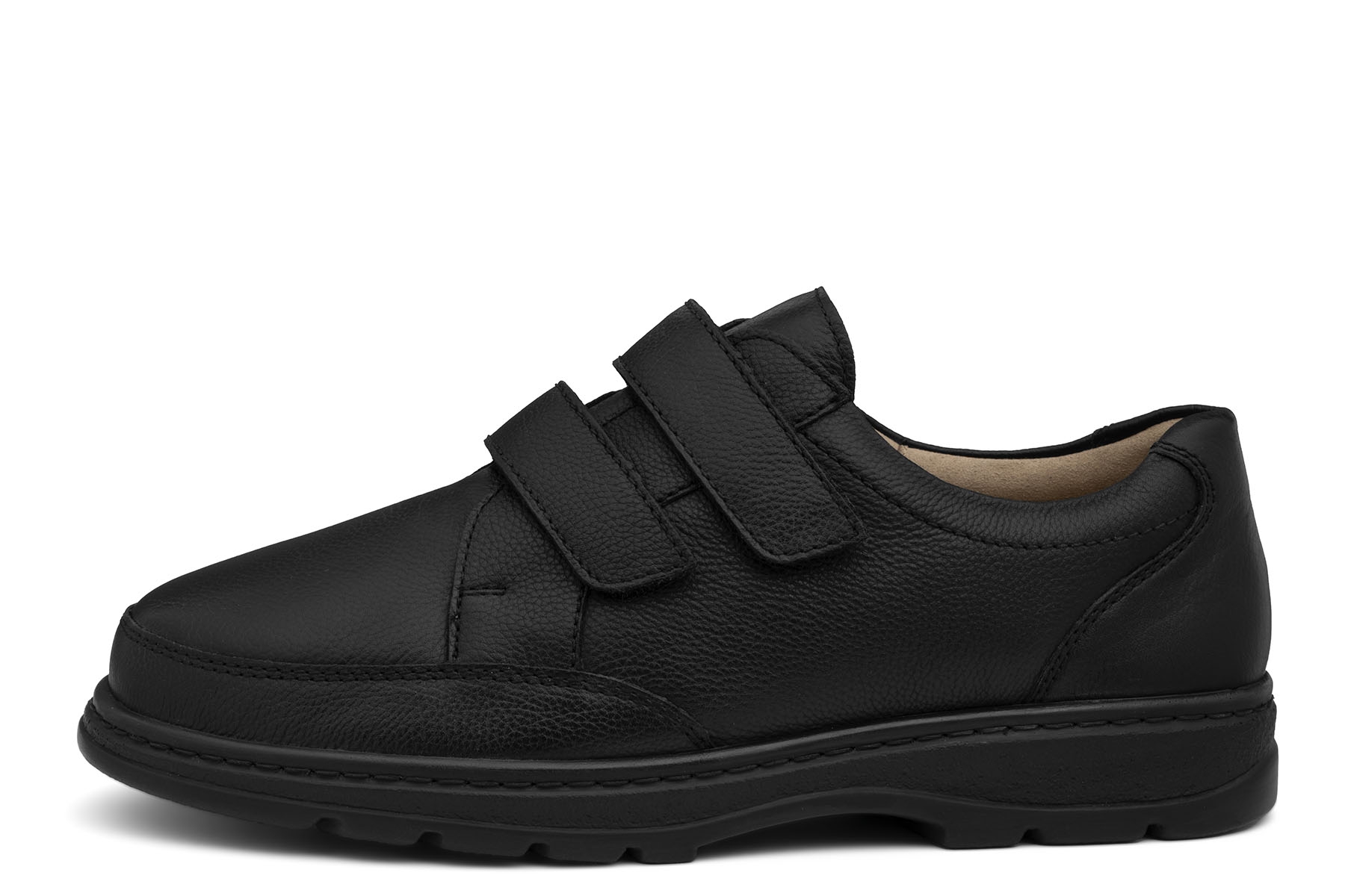 Solidus Therapo Herren 85018-00090 wygodne, zdrowotne półbuty męskie wykonane ze skóry naturalnej ; lekkie , elastyczne podeszwy; wyjmowane, miękkie wkładki profilowane na płaskostopie poprzeczne, można je zastąpić własnymi wkładkami ortopedycznymi; paski na rzep ułatwiają dopasowanie; Tęgość N - na stopy bardzo szerokie, zalecane dla cukrzyków.