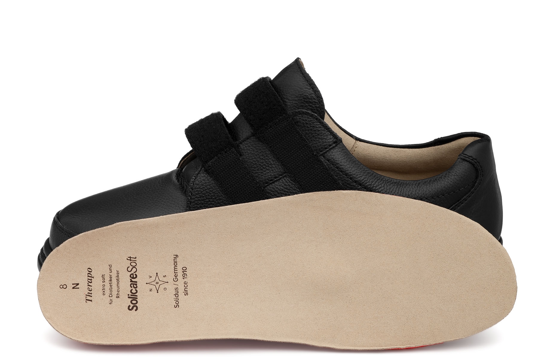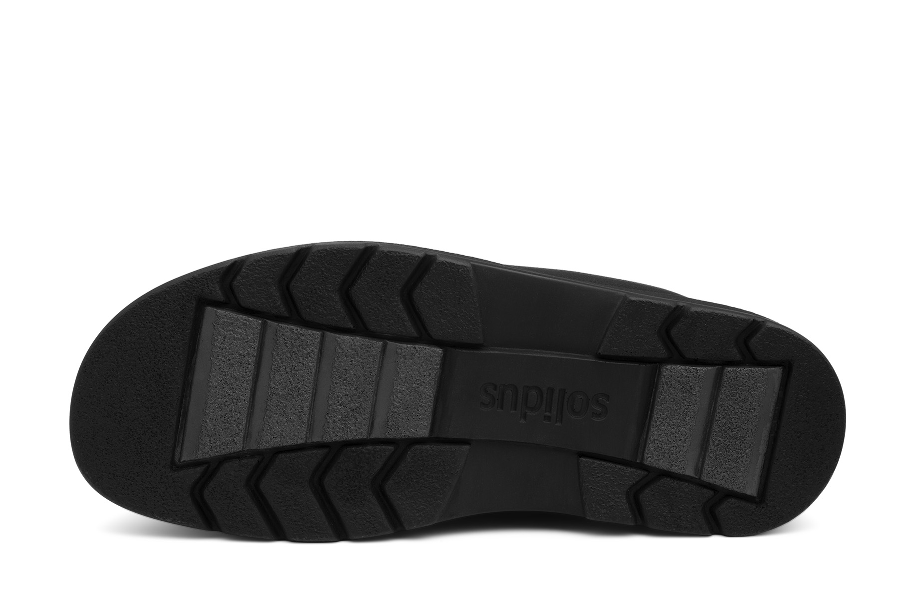 Buty Solicare Soft są doskonale dopasowane do wrażliwych stóp. W żadnym z krytycznych obszarów nie ma szwów, dzięki czemu można przechodzić cały dzień bez odczuwania punktów nacisku. Wygodne buty mają dodatkowe wyściółki w określonych obszarach. W niektórych modelach obuwia z linii Solicare Soft są stosowane materiały rozciągliwe, ludzie z wadami rozwojowymi stopy, takimi jak palucha koślawego, haluksami, palcami młotkowatymi a także osoby z cukrzycowymi stopami będą cieszyć się komfortem noszenia tego obuwia, ponieważ idealnie dopasowuje się do stopy. Podszewka z mikrowłokien zapewnia higienę obuwia.Podobnie jak w przypadku wszystkich butów Solidus, buty Solicare Soft mają wyjmowane wkładki, które można zastąpić własnymi wkładkami ortopedycznymi.