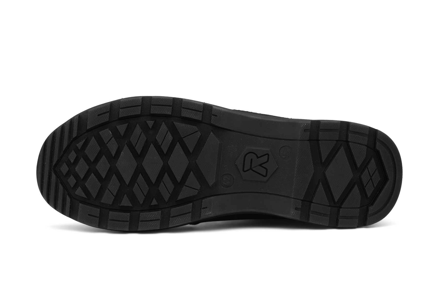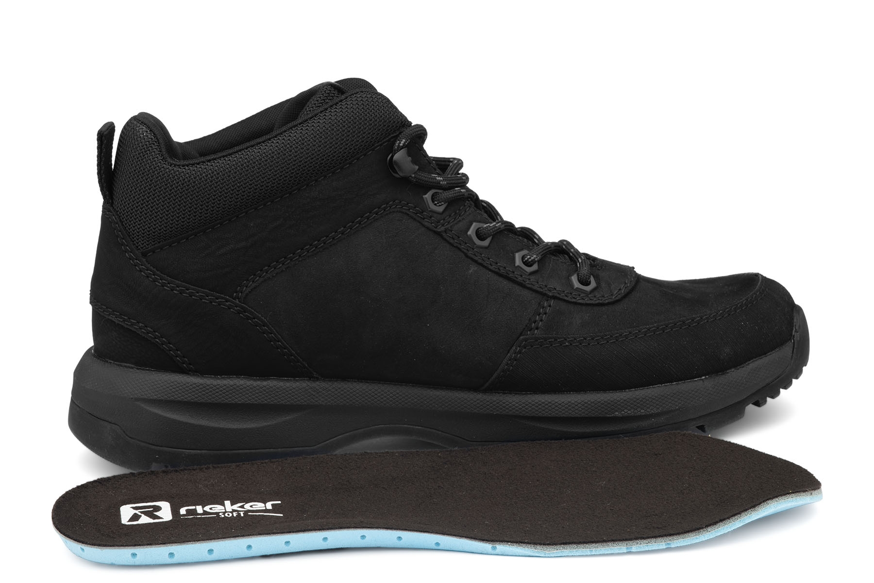 Rieker Tex wzór U1670-00 wygodne botki męskie wykonane z materiału zabezpieczonego nieprzemakalną membraną Rieker Tex; wyjmowane miękkie wkładki; grube, elastyczne, antypoślizgowe podeszwy; lekko ocieplone filcem.