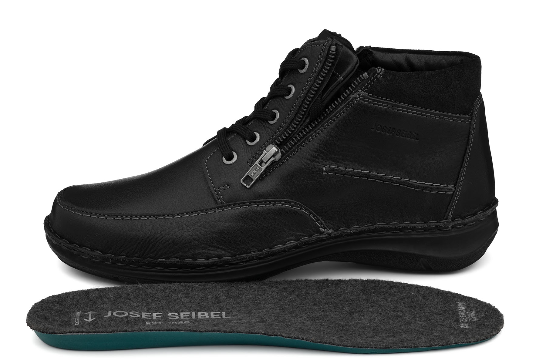 Josef Seibel New Anvers 84 44984 PL049 100 wygodne męskie botki wykonane z miękkiej skóry naturalnej - licowej; elastyczne, antypoślizgowe, amortyzujące podeszwy; wyjmowane, miękkie, filcowe wkładki profilowane; boczne suwaki ułatwiające zakładanie; ocieplone wełną; tęgość K - polecane na stopy szerokie.