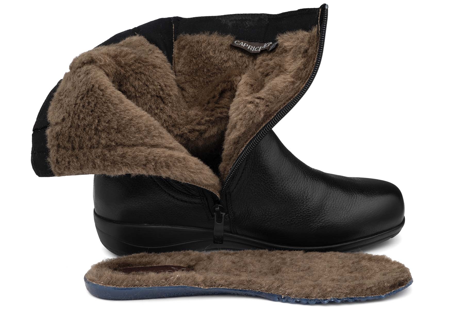 Caprice 9-26456-43 022 Tex wygodne damskie botki wykonane ze skóry naturalnej - licowej zabezpieczonej nieprzemakalną membraną - Caprice Tex ; wyjmowane, ciepłe wełniane wkładki; elastyczne, antypoślizgowe podeszwy; boczny suwak ułatwiający zakładanie; dobrze ocieplone; tęgość H.