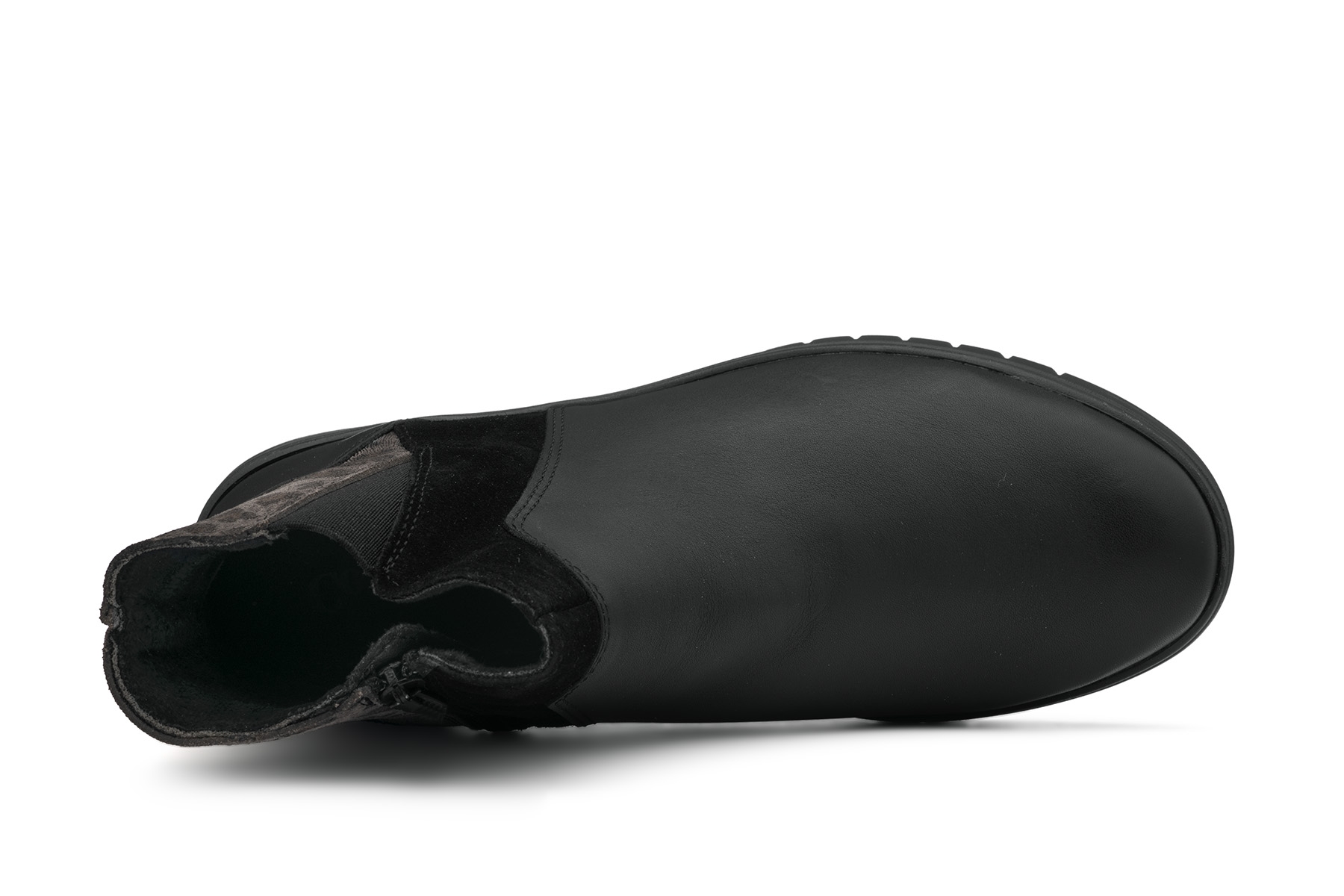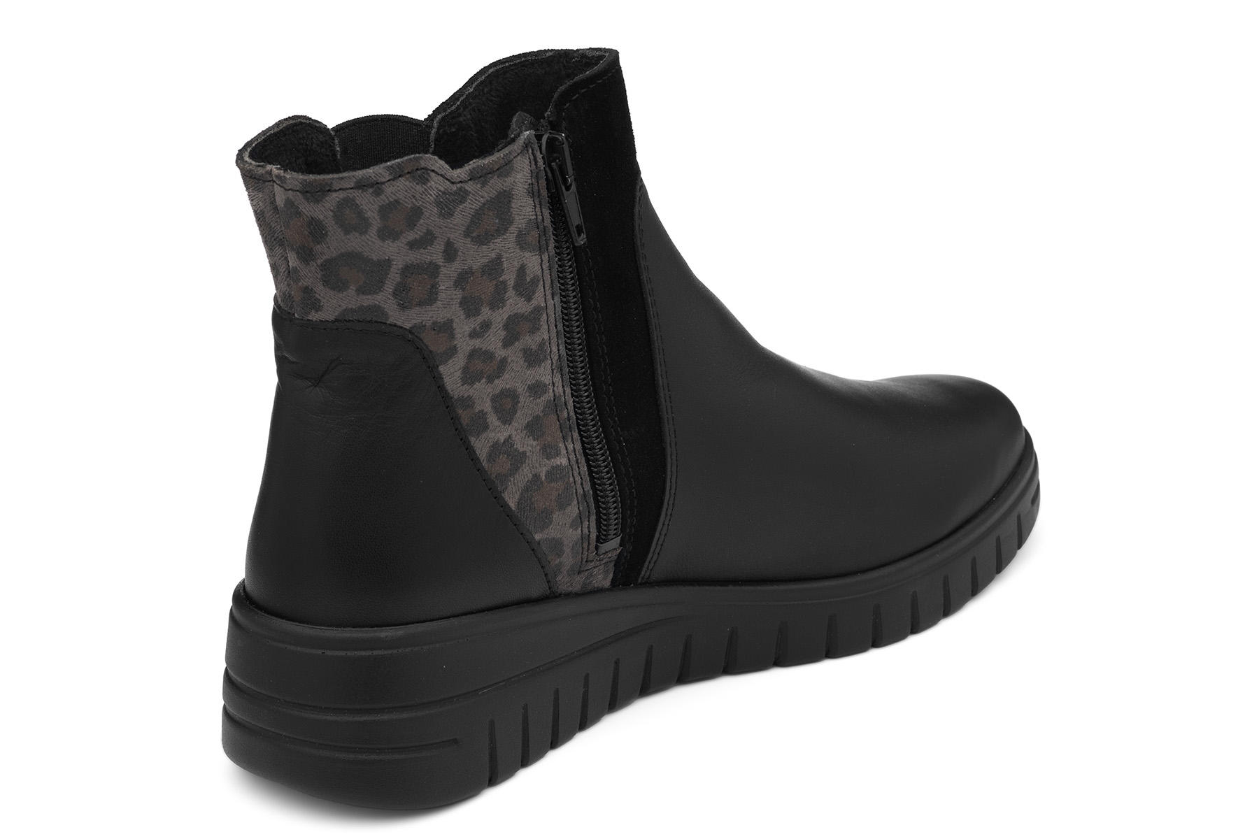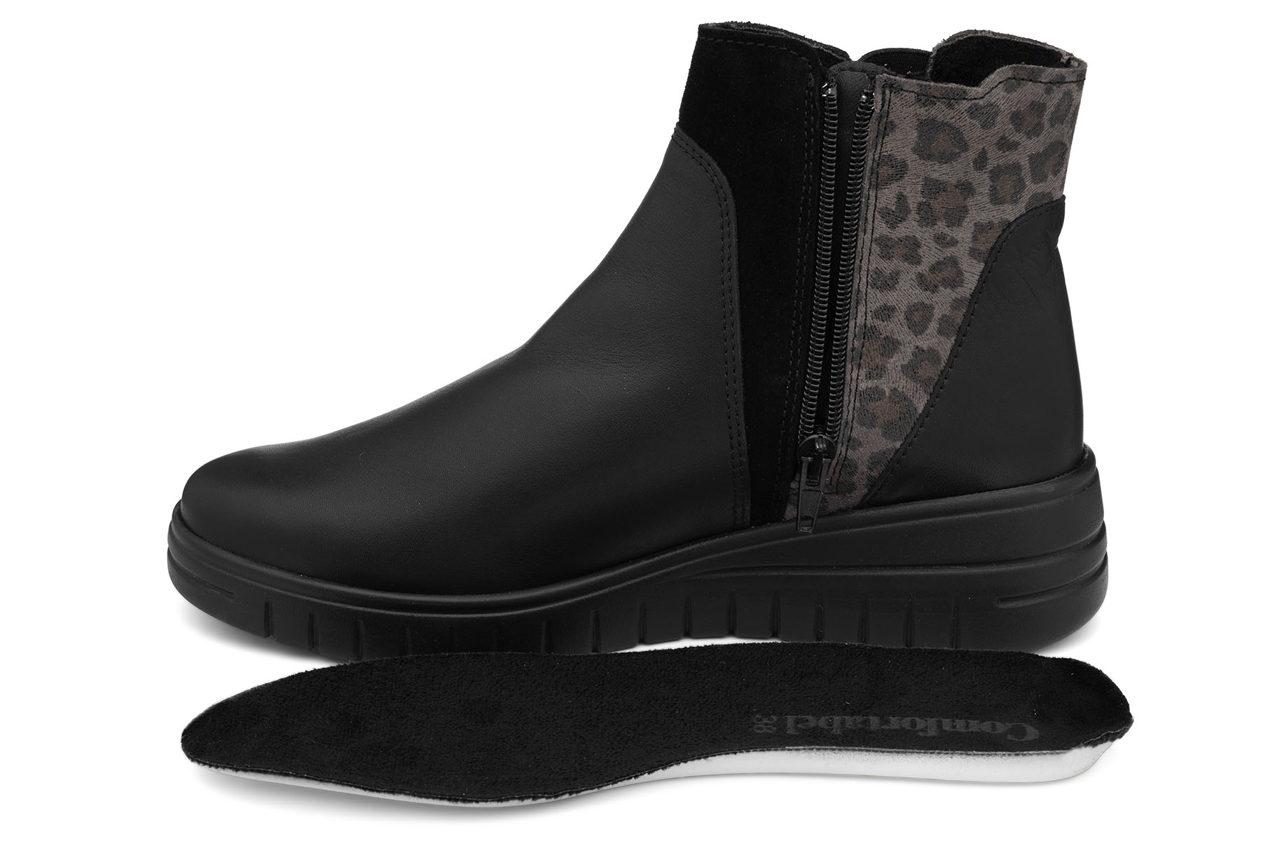 Comfortabel 990727 01 wygodne damskie botki wykonane ze skóry naturalnej; wyjmowane wkładki - można je zastąpić własnymi na przykład ortopedycznymi; boczny suwak ułatwiający zakładanie; lekko ocieplone polarem; elastyczne, antypoślizgowe podeszwy; tęgość H.