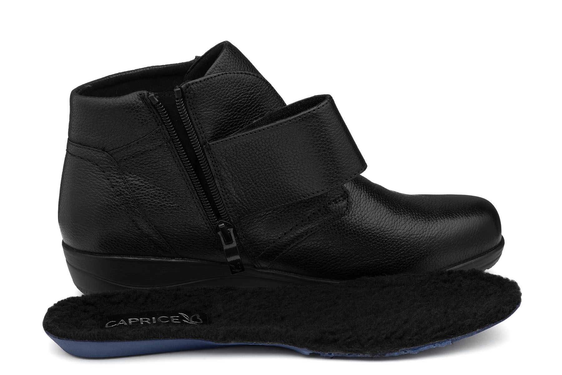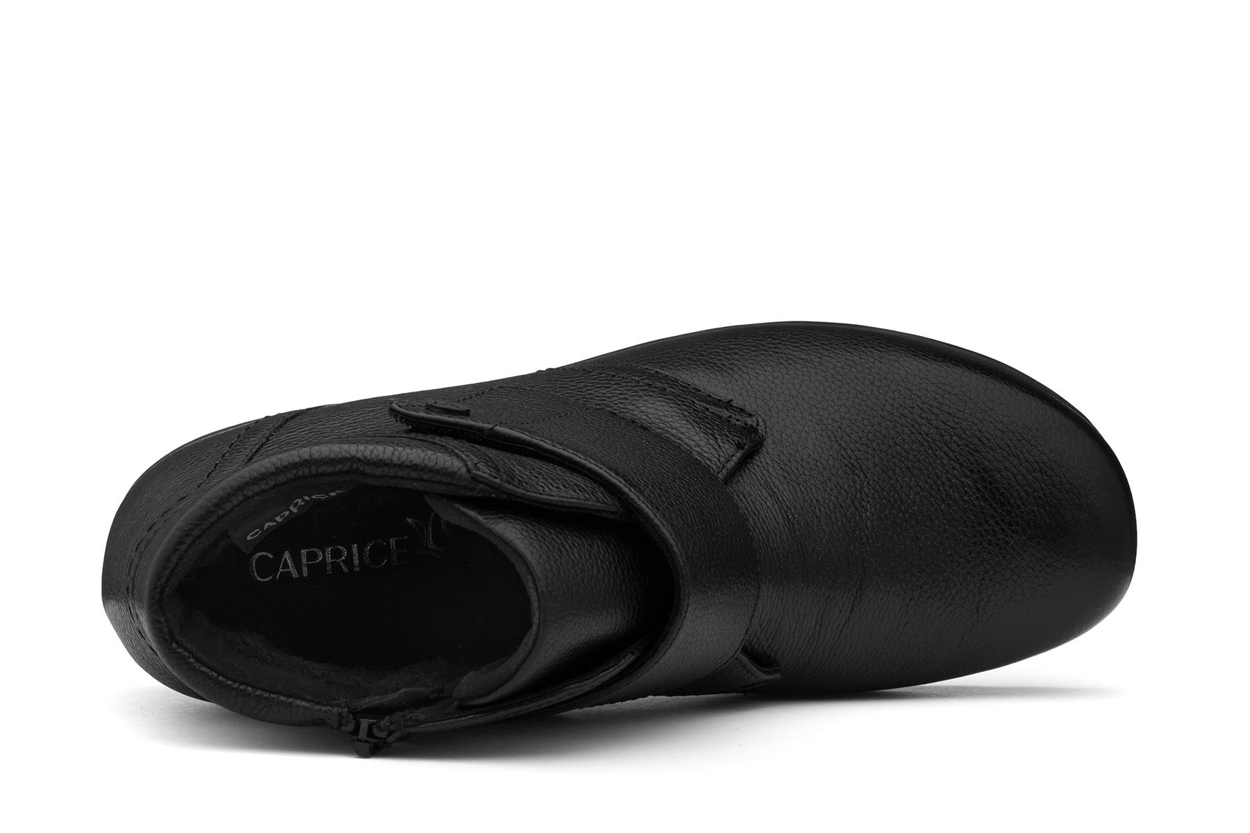 Caprice 9-26457-41 022 wygodne damskie botki wykonane z miękkiej skóry naturalnej - licowej; wyjmowane, miękkie wkładki; elastyczne, antypoślizgowe podeszwy; ocieplone wełną; boczny suwak ułatwiający zakładanie; tęgość H - polecane na stopy szersze.