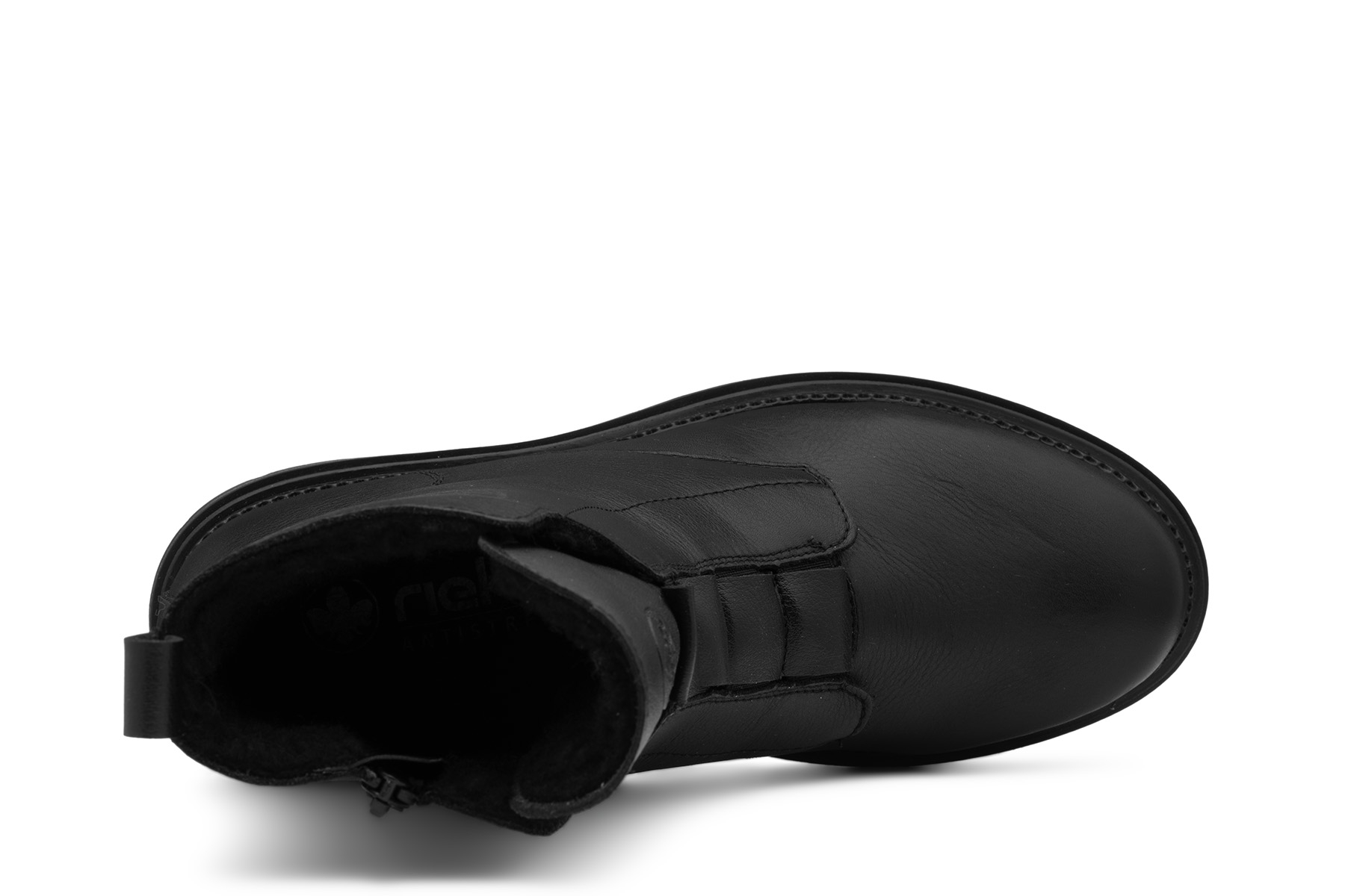 Rieker wzór Y3160-00 wygodne botki damskie wykonane ze skóry naturalnej ; miękkie filcowe wkładki;  grube, elastyczne, antypoślizgowe podeszwy; stabilne obcasy; dobrze ocieplone; boczny suwak ułatwiający zakładanie.