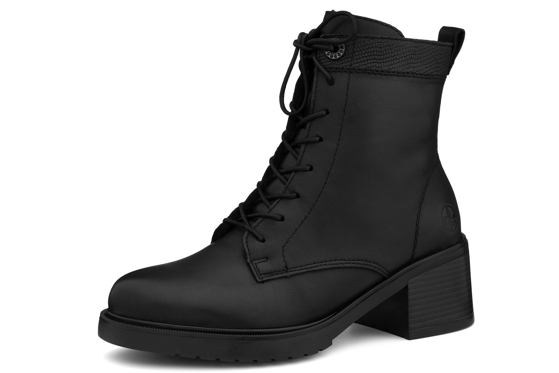 Rieker wzór Y5201-00 wygodne botki damskie wykonane ze skóry naturalnej ; miękkie filcowe wkładki; grube, antypoślizgowe podeszwy; stabilne obcasy; ocieplone; boczny suwak ułatwiający zakładanie.