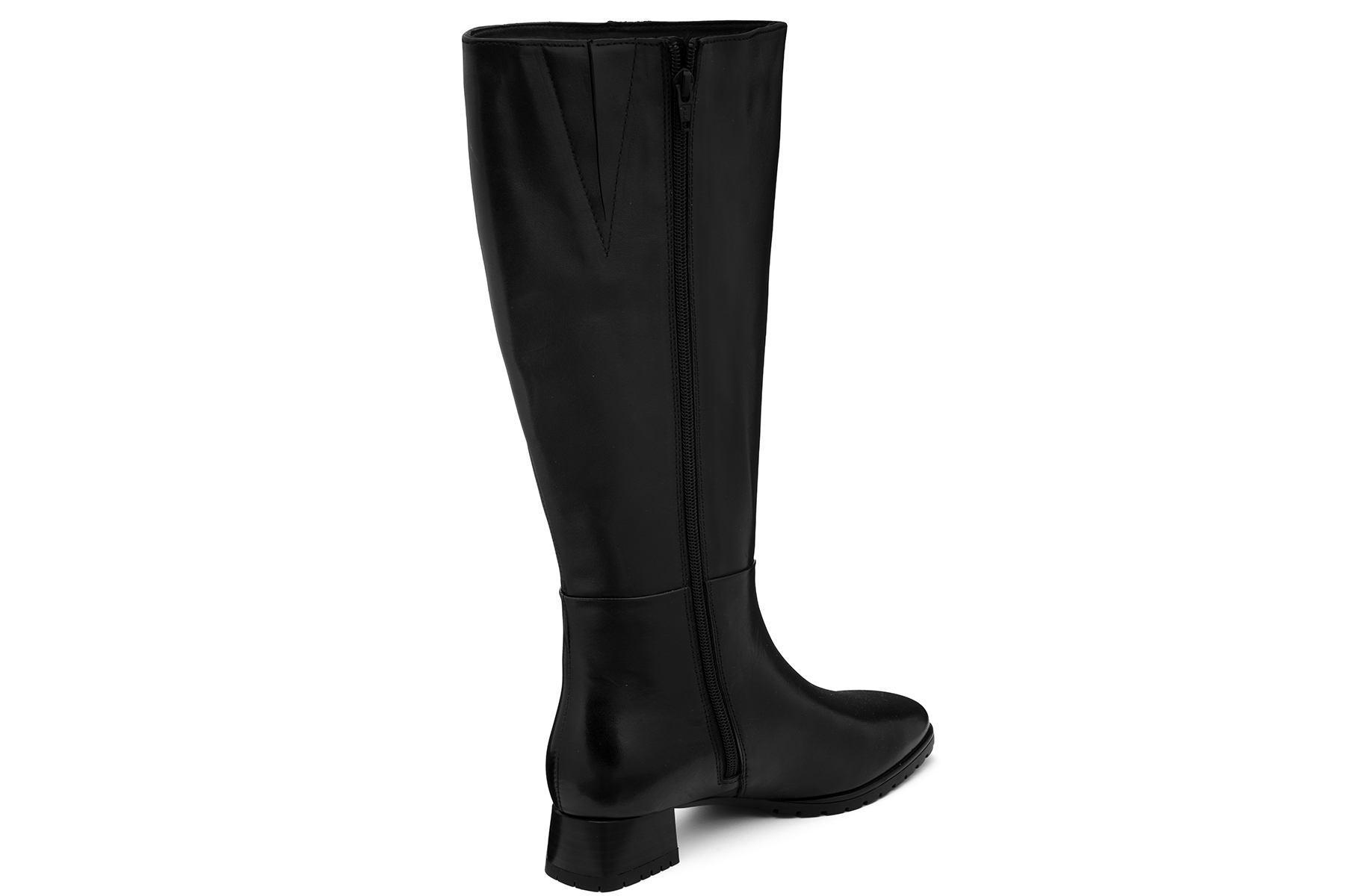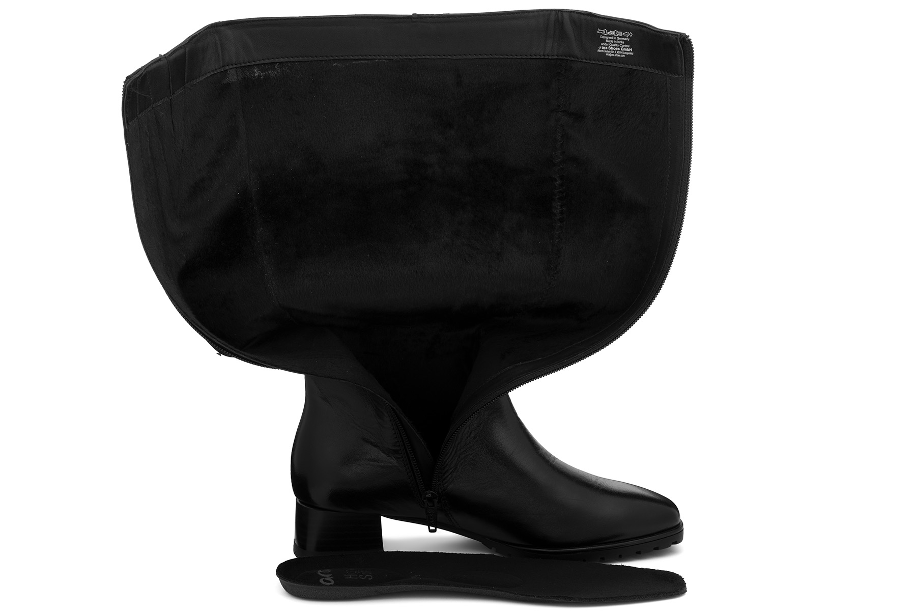 Ara Graz 12-20014 01H wygodne kozaki damskie wykonane z miękkiej skóry naturalnej - licowej; wyjmowane, amortyzujące wkładki - HighSoft z pelotą na płaskostopie poprzeczne; elastyczne, antypoślizgowe podeszwy; stabilne obcasy; lekko ocieplone futerkiem; tęgość H.