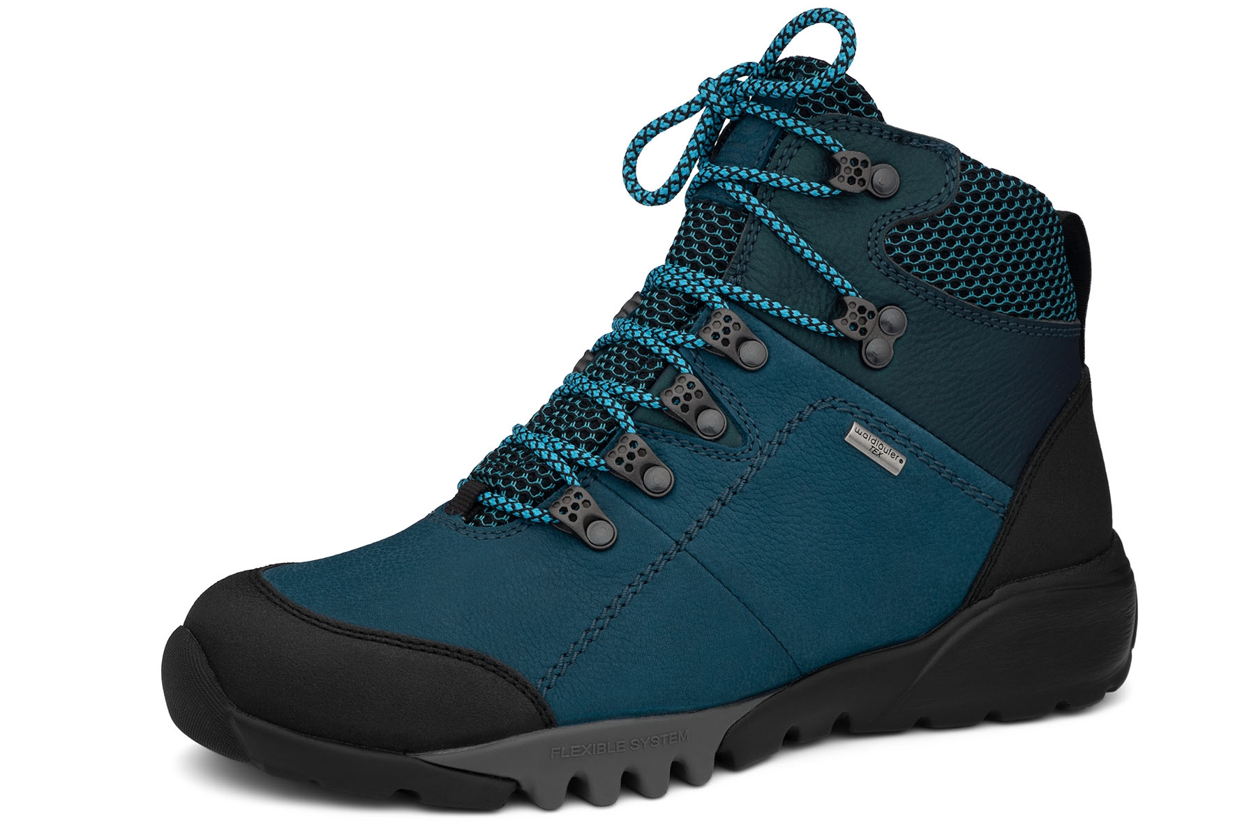 Waldlaufer Tex H-Amiata wzór 787974 400 124 wygodne botki trekkingowe wykonane ze skóry naturalnej, zabezpieczone membraną Waldlaufer Tex ( nieprzemakalne ); futrówka z miękkiej tkaniny; wyjmowane wkładki profilowane na płaskostopie podłużne i poprzeczne; lekkie, antypoślizgowe podeszwy; tęgość H - polecane na stopy szersze.