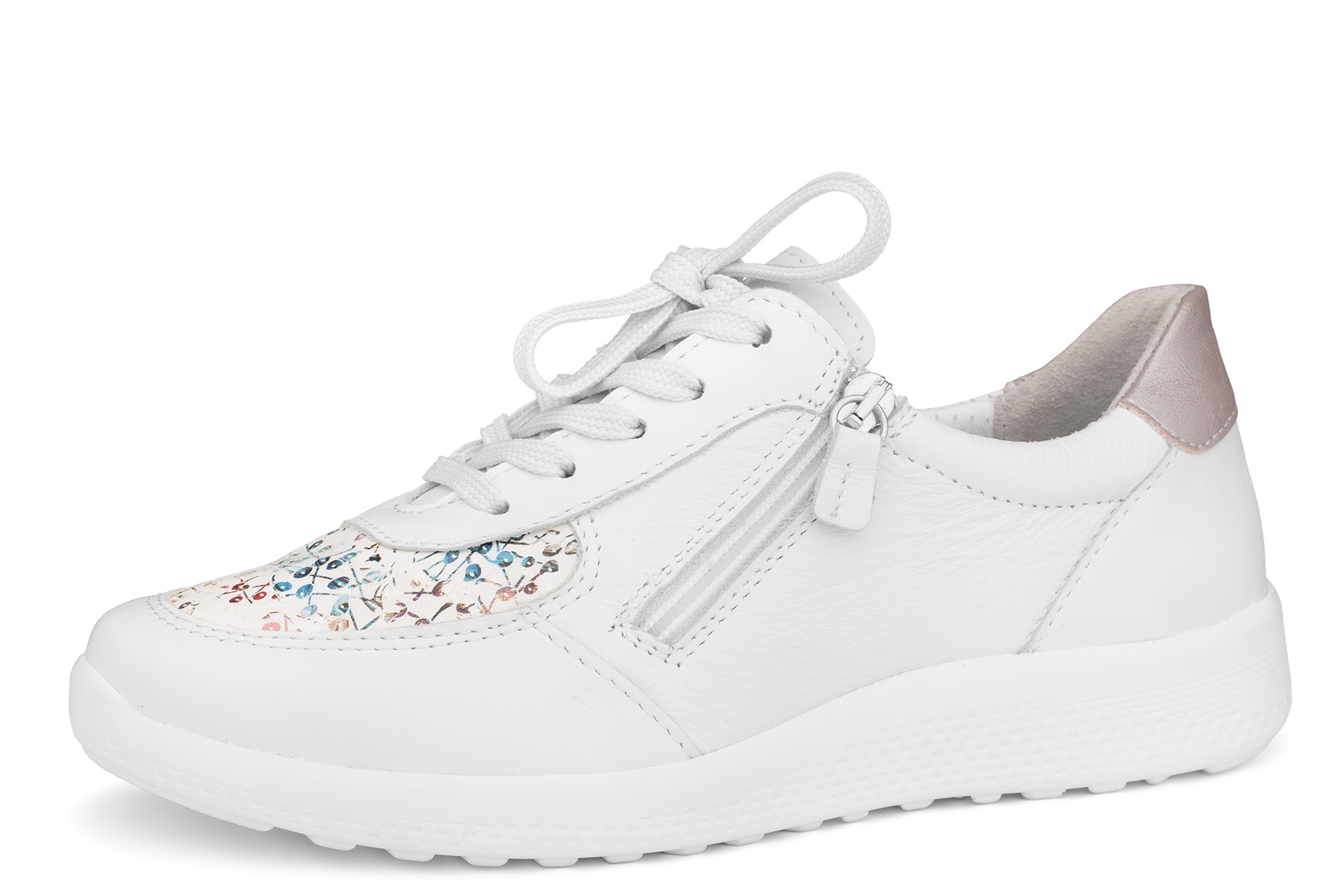 Comfortabel 951317-03 wygodne damskie półbuty wykonane ze skóry naturalnej - licowej; elastyczny materiał w miejscu haluksów; wyjmowane, skórzane wkładki - można je zastąpić innymi na przykład ortopedycznymi; boczny suwak ułatwiający zakładanie; lekkie, elastyczne, antypoślizgowe podeszwy; tęgość K - na stopy szerokie.