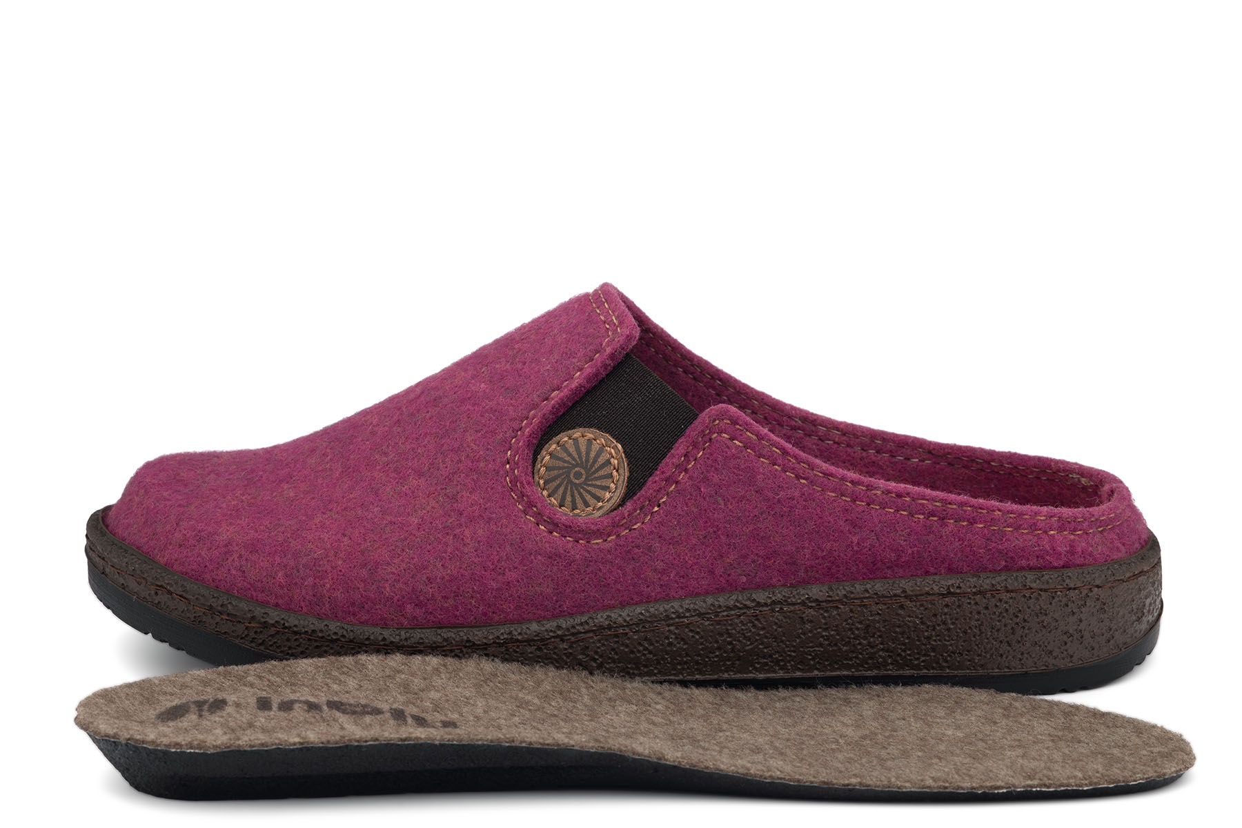 Inblu NL-10 Azalea wygodne, zdrowotne damskie kapcie wykonane z naturalnego filcu; wyjmowane filcowe wkładki - możne je zastąpić własnymi - na przykład ortopedycznymi; lekkie, elastyczne podeszwy.