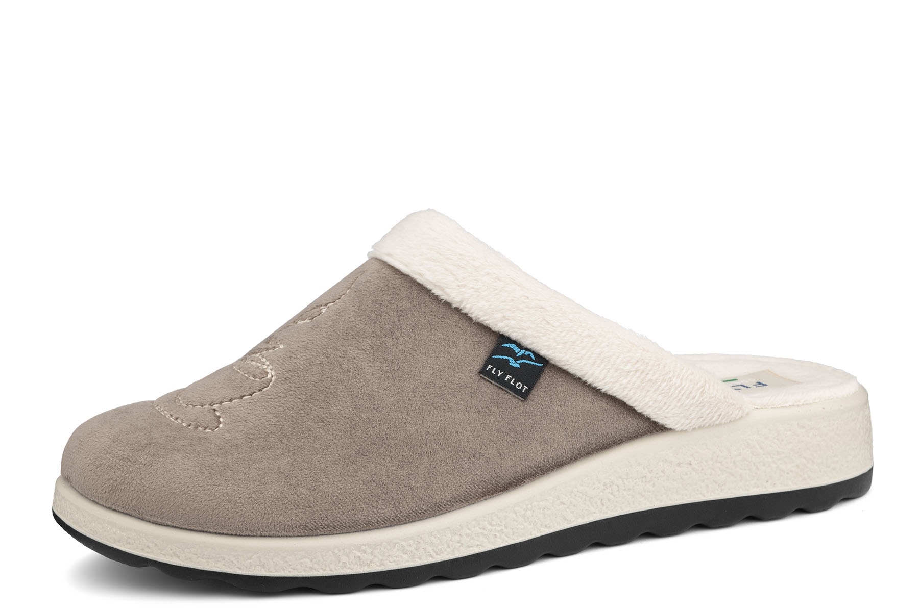 Fly Flot 51 X95 PM TAUPE wygodne, ciepłe damskie kapcie wykonane z tkaniny; lekko profilowane wkładki ; elastyczne, antypoślizgowe podeszwy; tęgość H - polecane na stopy szersze.