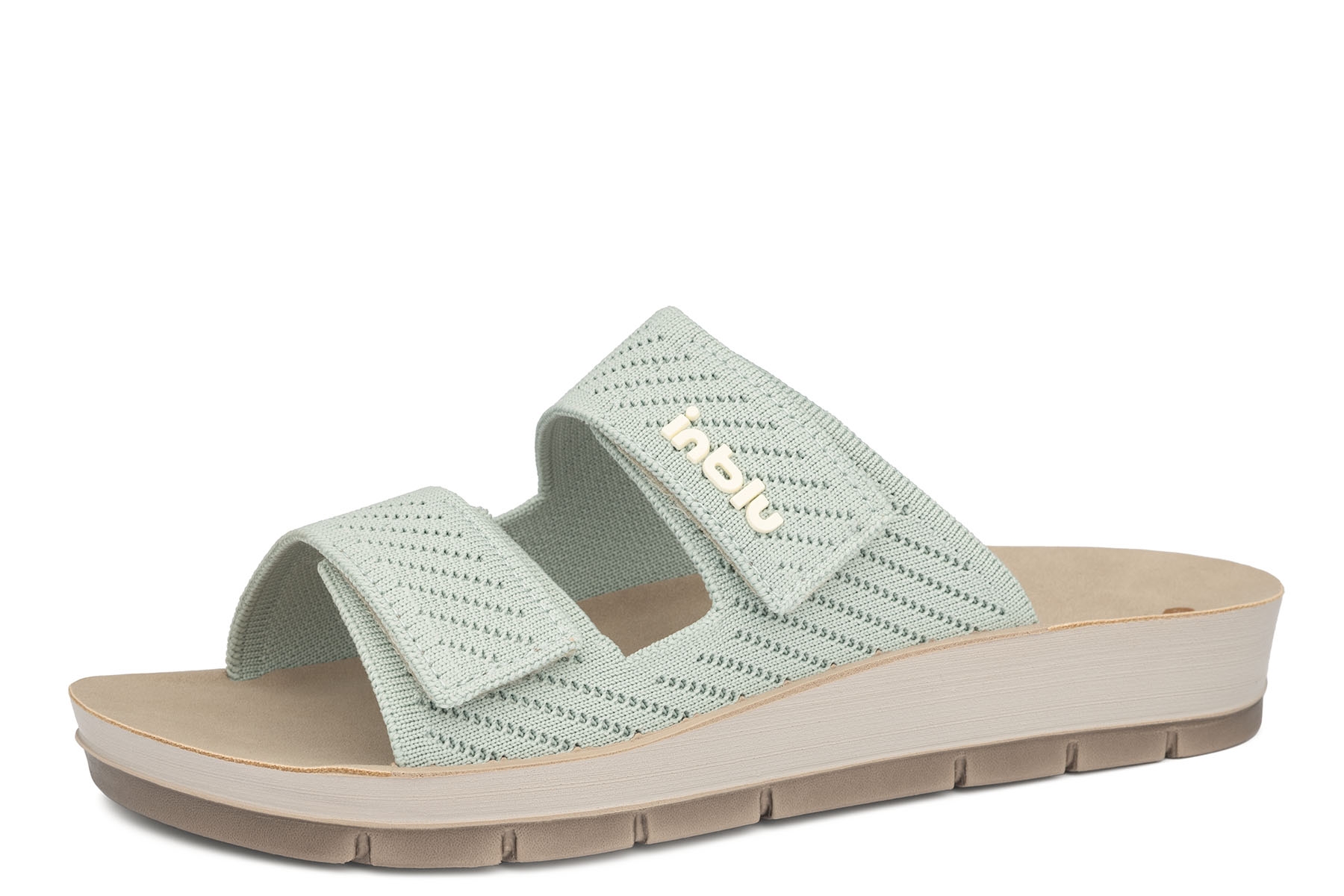 Inblu AG-15 verdino wygodne, zdrowotne damskie klapki wykonane z tkaniny; miękkie, anatomicznie wyprofilowane wkładki; regulacja paskami na rzep; lekkie, elastyczne podeszwy.