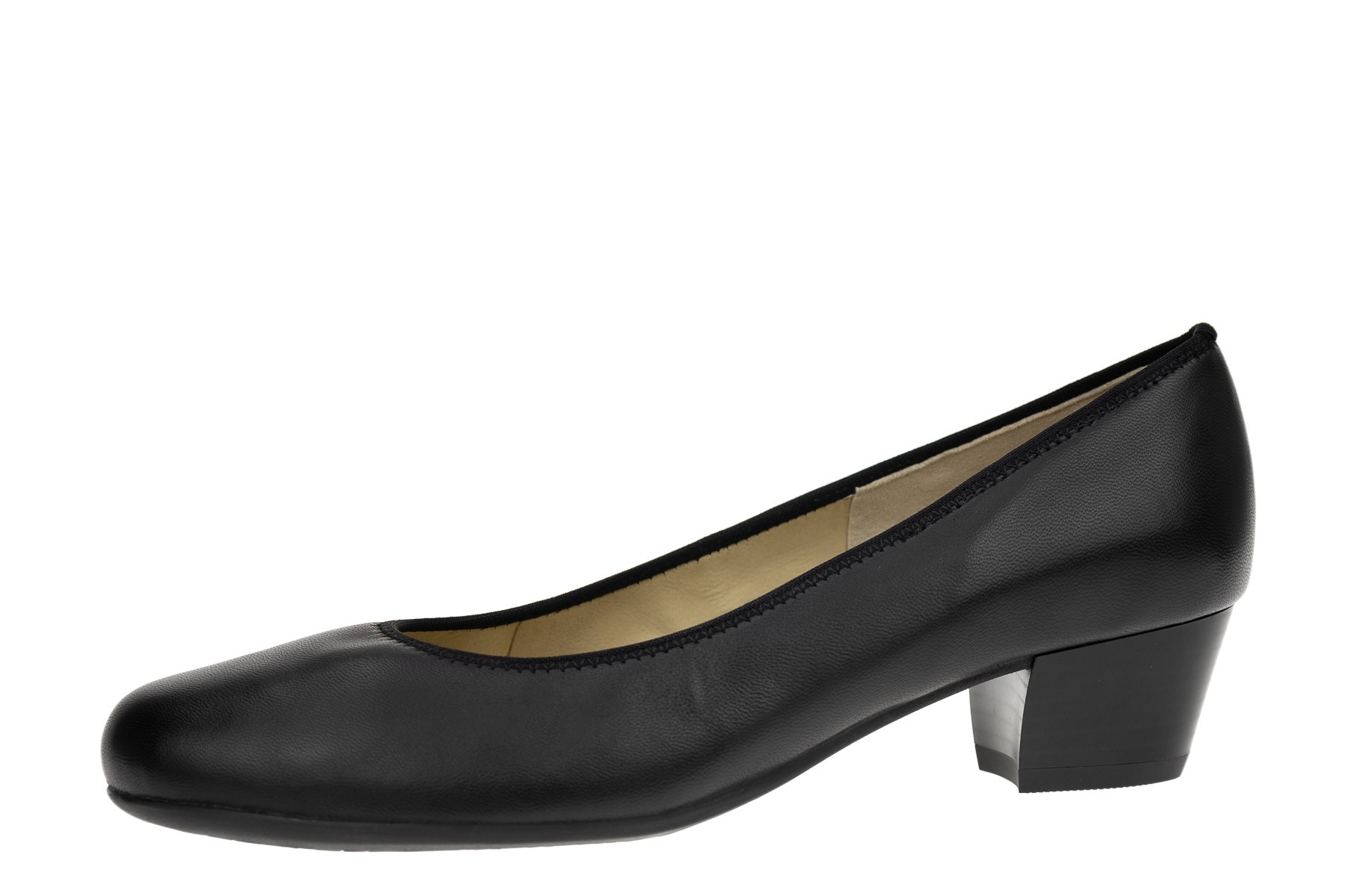 Ara Catania 12-63652-17 wygodne damskie czółenka wykonane z skóry naturalnej - licowej w kolorze czarnym; bardzo miękkie skórzane wkładki - High Soft; elastyczne, antypoślizgowe podeszwy; tęgość H 1/2 - polecane na stopy szerokie.