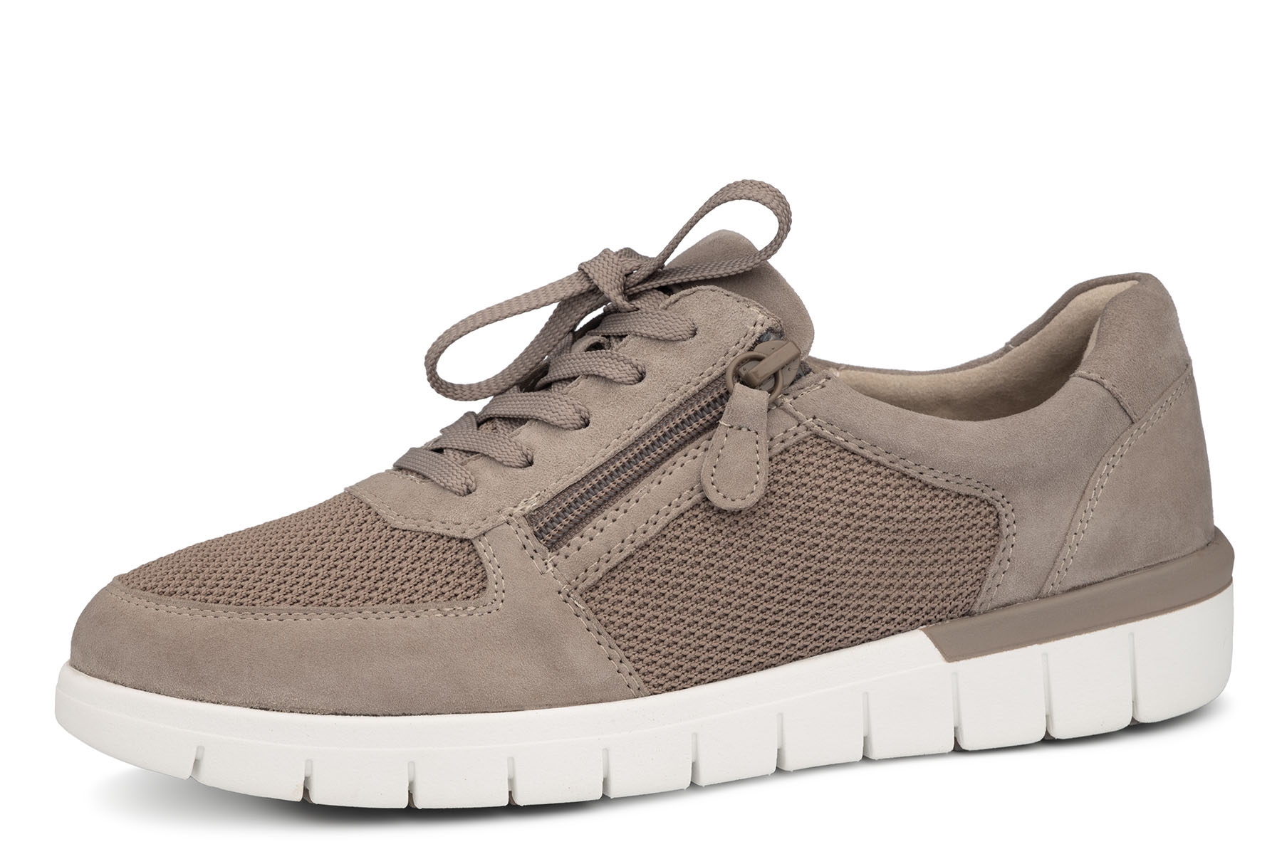Caprice 9-23700-42 32F wygodne damskie półbuty wykonane z połączenia miękkiej skóry naturalnej i przewiewnej tkaniny; wyjmowane skórzane wkładki; elastyczne, antypoślizgowe podeszwy; suwak ułatwiający zakładanie; tęgość H - polecane na stopy szersze.
