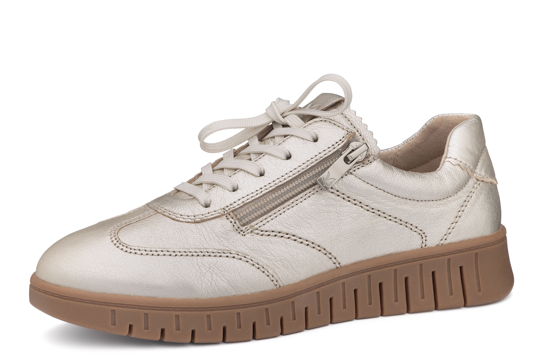Caprice 9-23761-46 959 wygodne damskie półbuty wykonane ze miękkiej skóry naturalnej; wyjmowane, skórzane wkładki - Climotion; elastyczne, antypoślizgowe podeszwy; suwak ułatwiający zakładanie; tęgość H - polecane na stopy szersze.