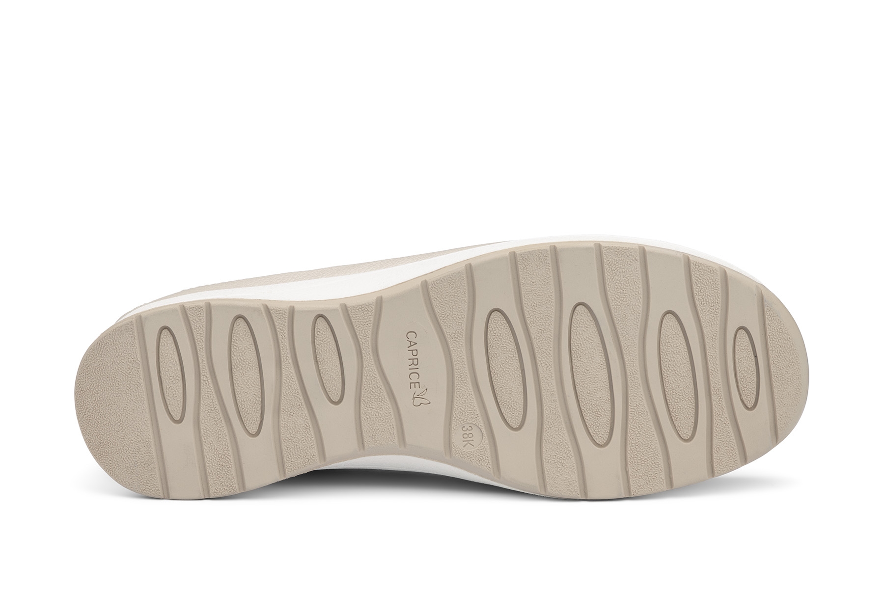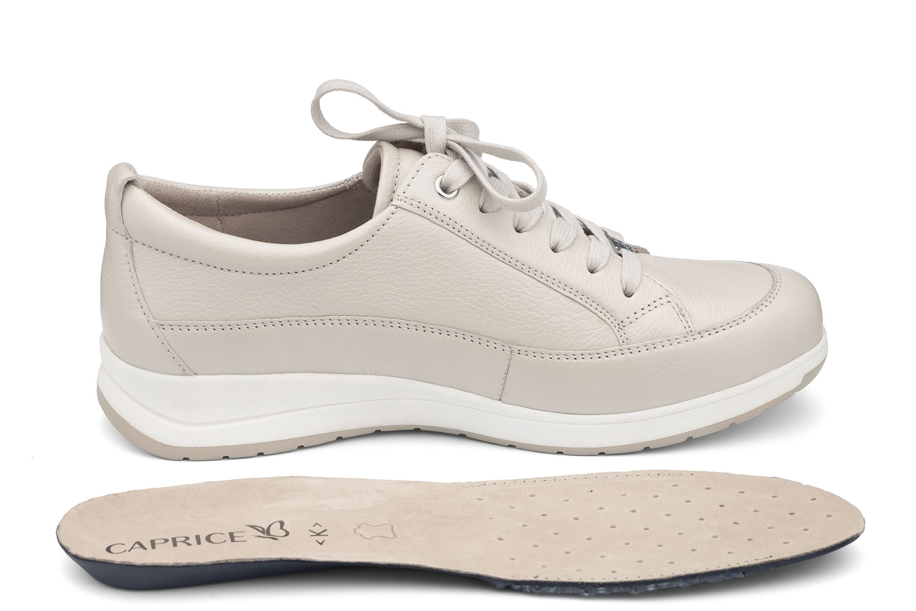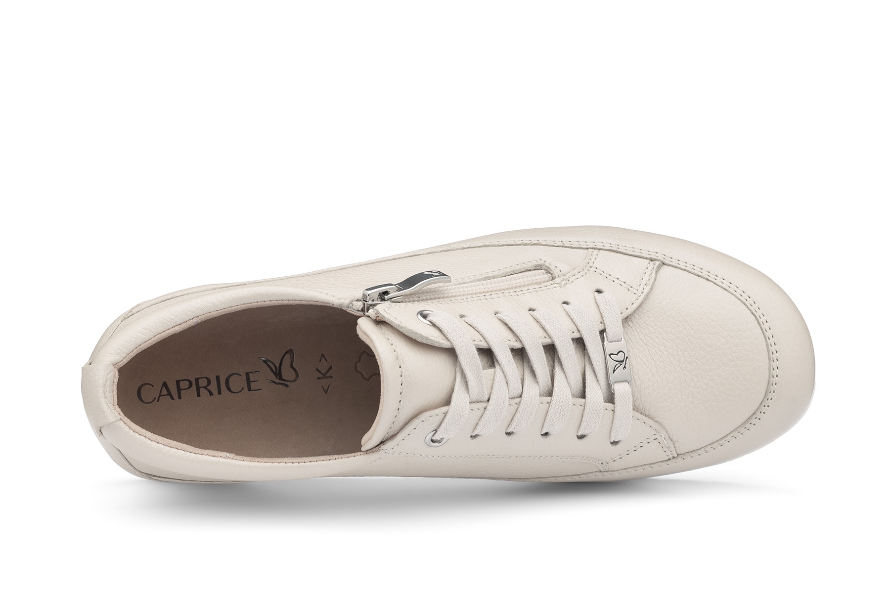 Caprice 9-23727-46 119 wygodne damskie półbuty wykonane ze skóry naturalnej - licowej; wyjmowane skórzane wkładki; elastyczne, antypoślizgowe podeszwy; suwak ułatwiający zakładanie; tęgość K - na stopy szerokie.