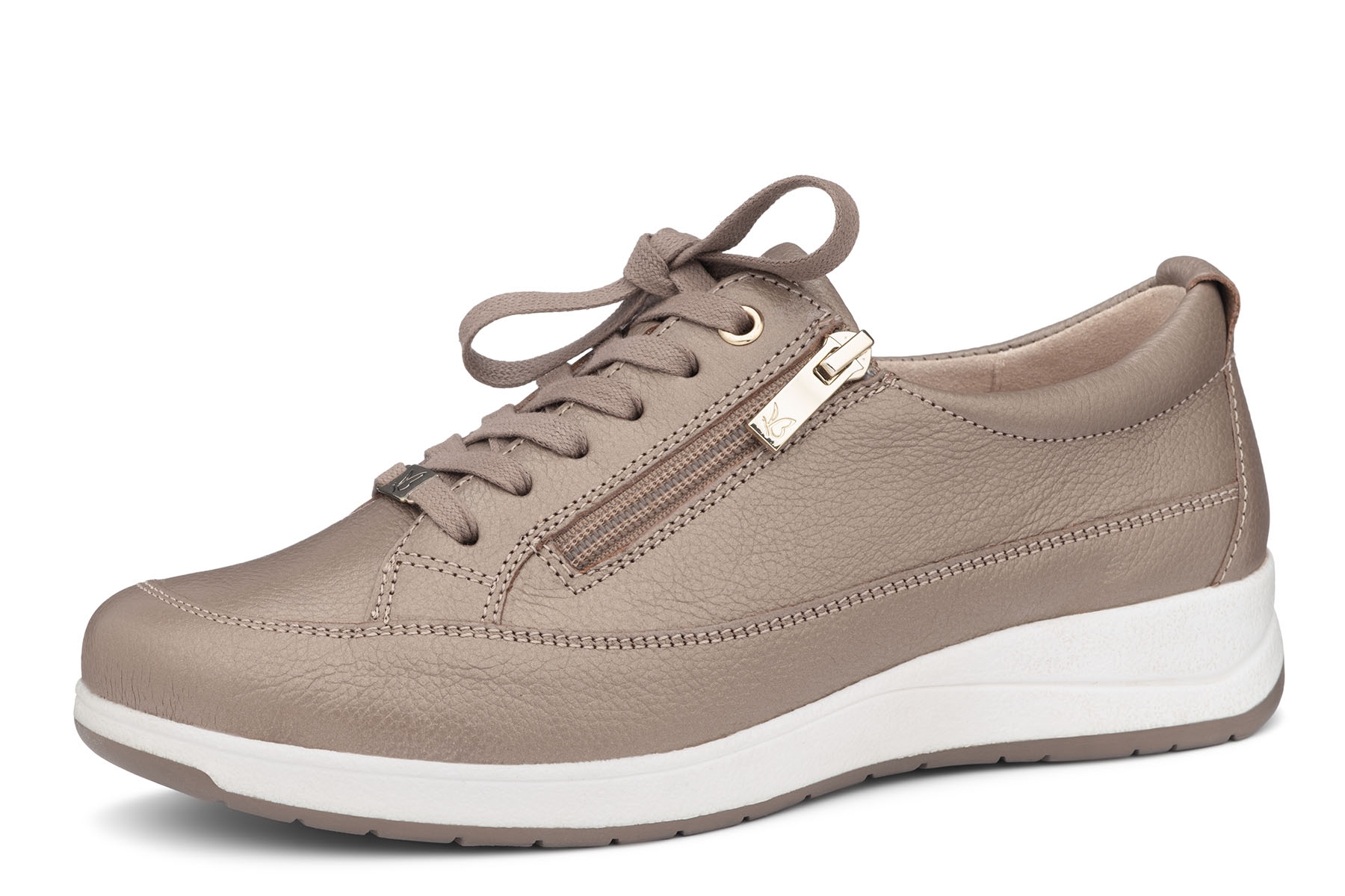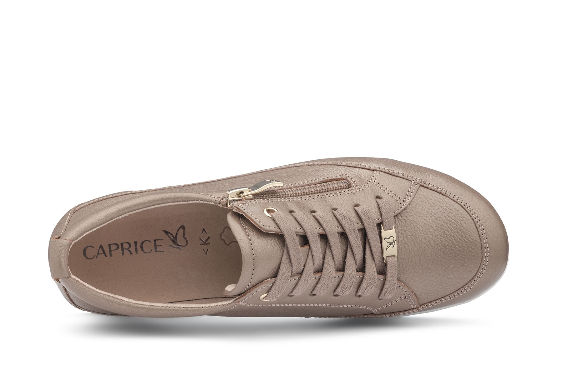Caprice 9-23727-46 310 wygodne damskie półbuty wykonane ze skóry naturalnej - licowej; wyjmowane skórzane wkładki; elastyczne, antypoślizgowe podeszwy; suwak ułatwiający zakładanie; tęgość K - na stopy szerokie.