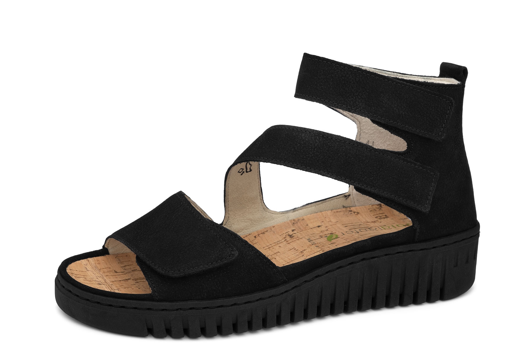 Waldlaufer H-Willow 955801 189 001 wygodne , zdrowotne sandały damskie wykonane ze skóry naturalnej; wyjmowane wkładki korkowe profilowane na płaskostopie podłużne i poprzeczne; regulacja paskami na rzep; lekkie, elastyczne, antypoślizgowe podeszwy; tęgość H polecane na stopy szersze.