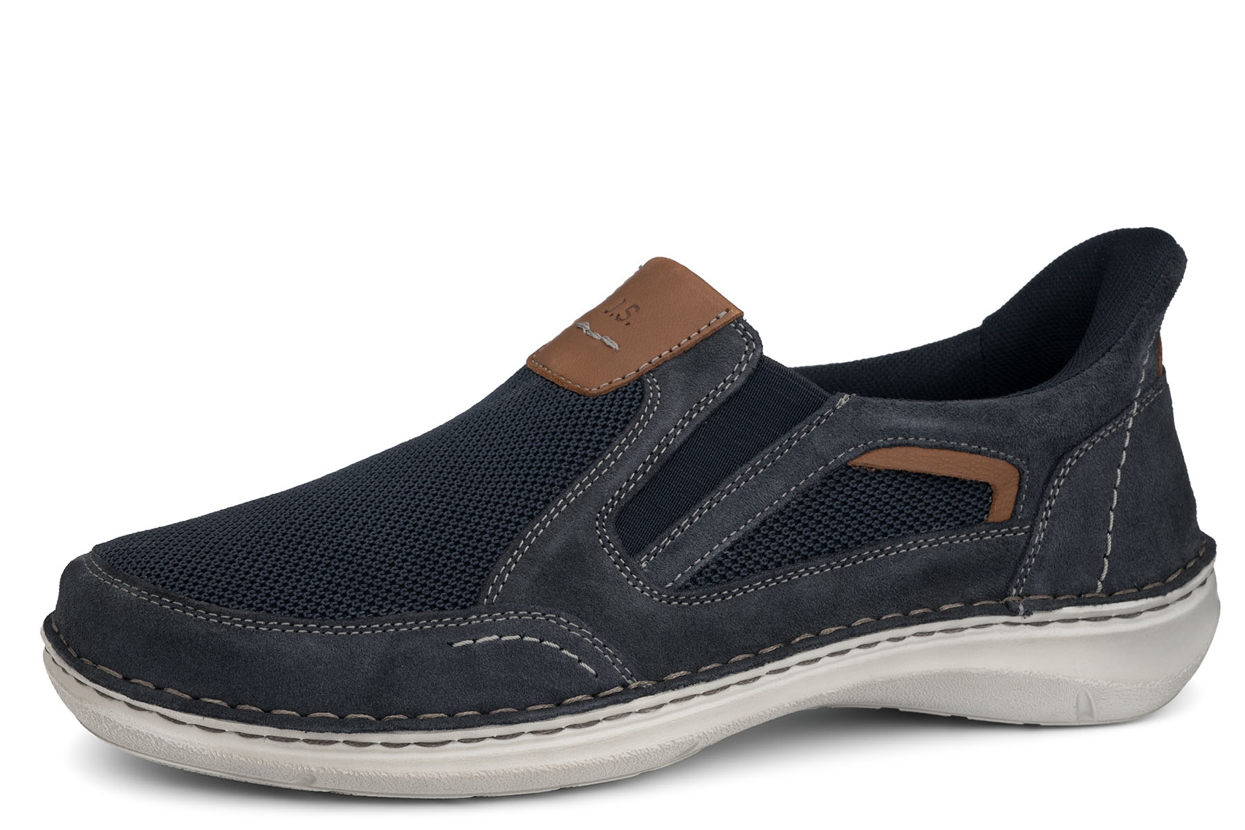Josef Seibel New Anvers 25 44925 TE387 568 wygodne męskie półbuty wykonane z połączenia skóry naturalnej - zamszowej i przewiewnej tkaniny ; zapiętki typu Hands Free; elastyczne, lekkie, amortyzujące podeszwy; wyjmowane lekko profilowane wkładki; tęgość K - polecane na stopy szerokie.