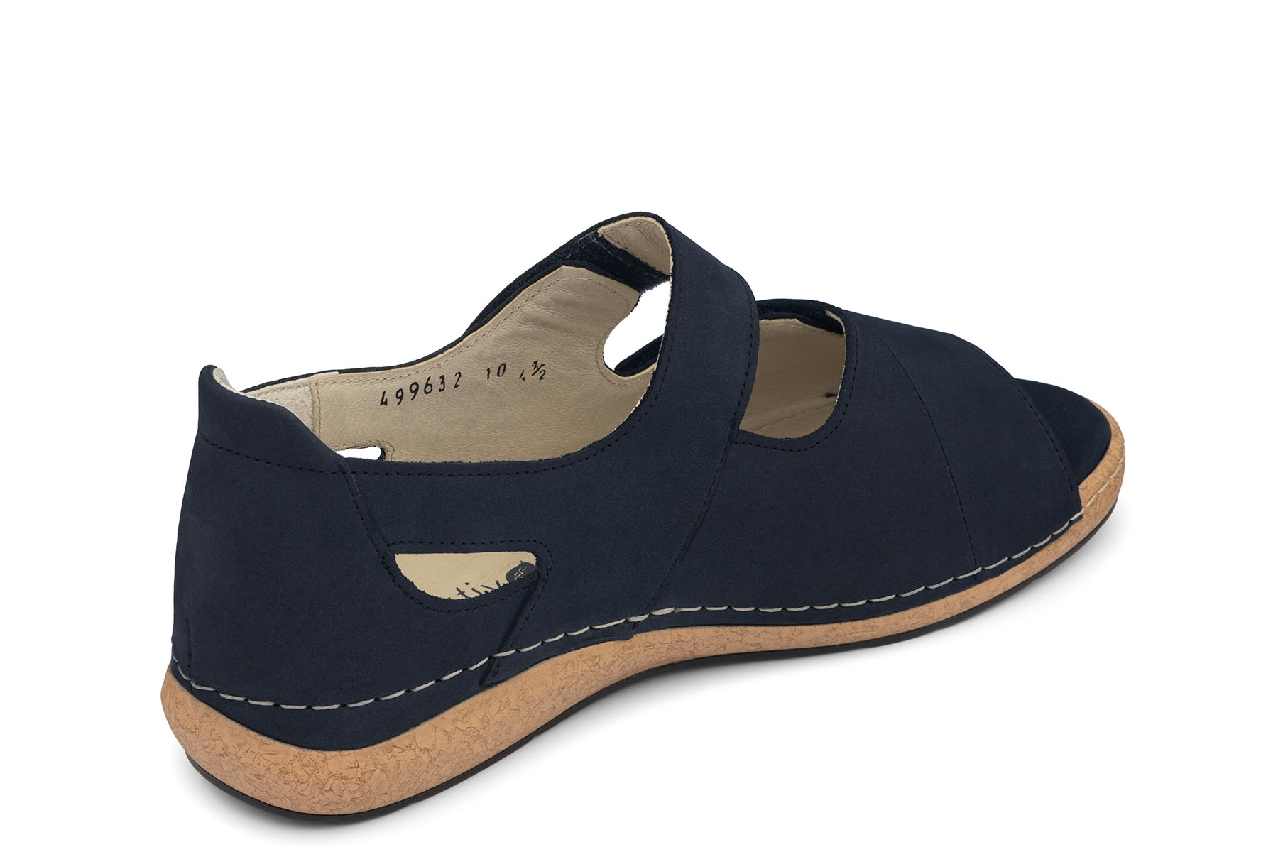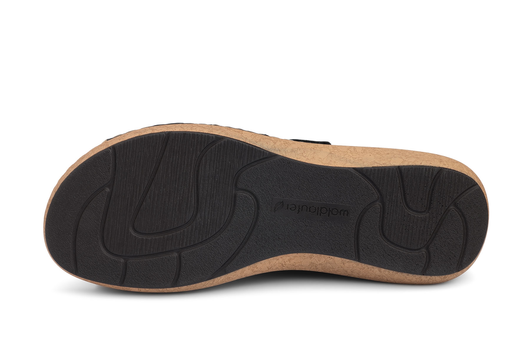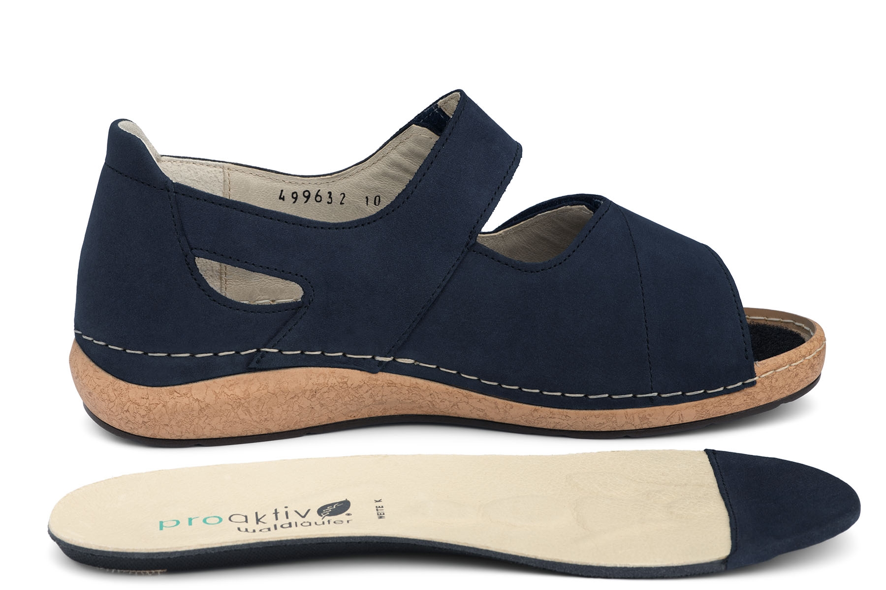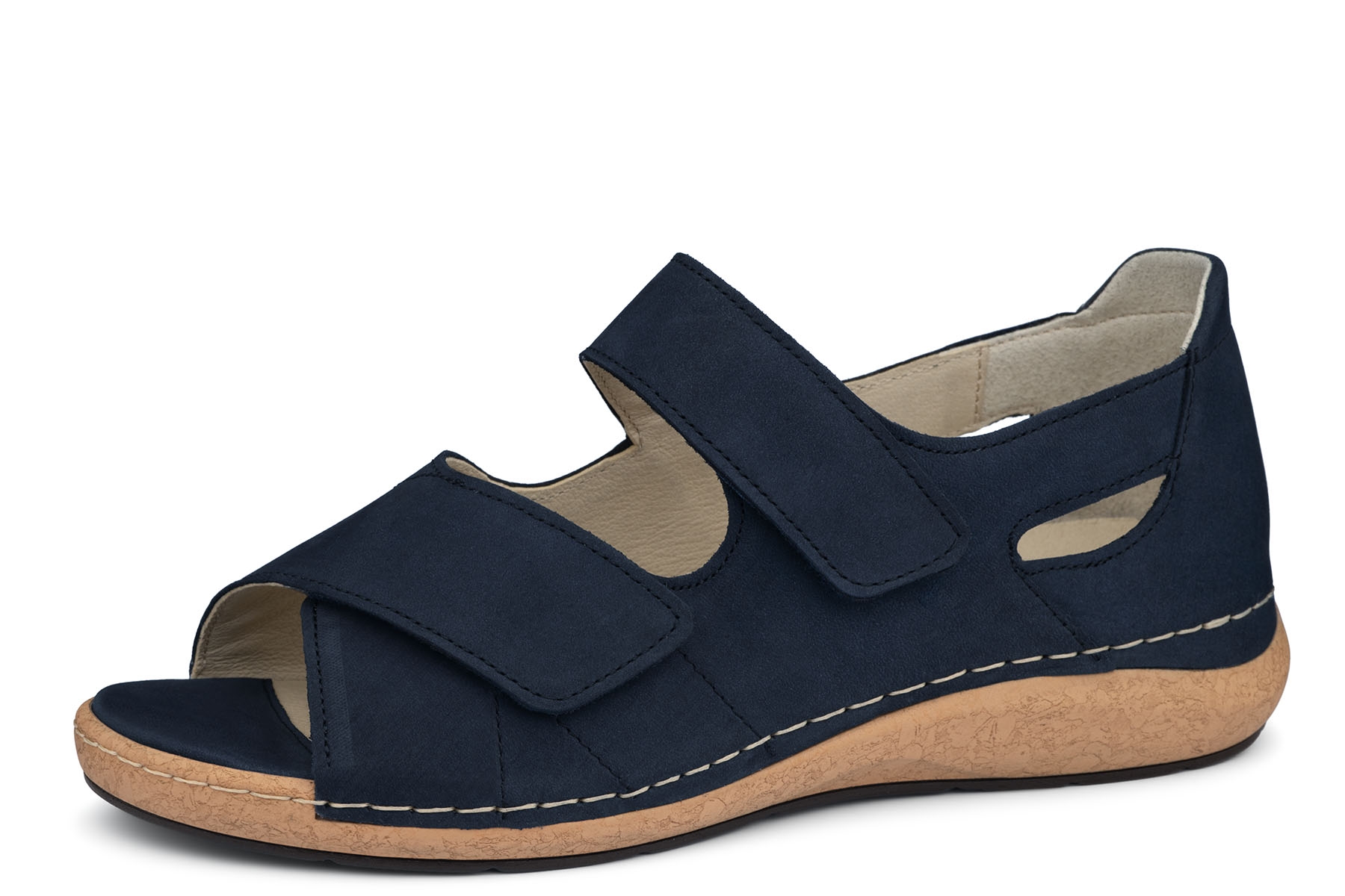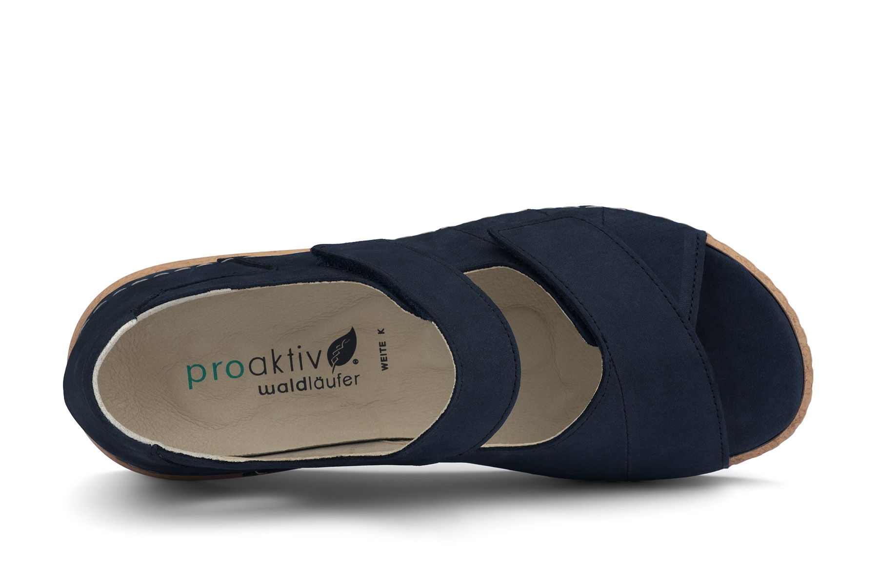 Waldlaufer K-Heliett wzór 681801 191 217 wygodne , zdrowotne sandały damskie wykonane ze skóry naturalnej - nubuk; wyjmowana skórzana wkładka z masującymi wypustkami ProAktiv profilowana na płaskostopie podłużne i poprzeczne; regulacja paskami na rzep; lekkie, elastyczne, antypoślizgowe podeszwy; tęgość K polecane na stopy szerokie.