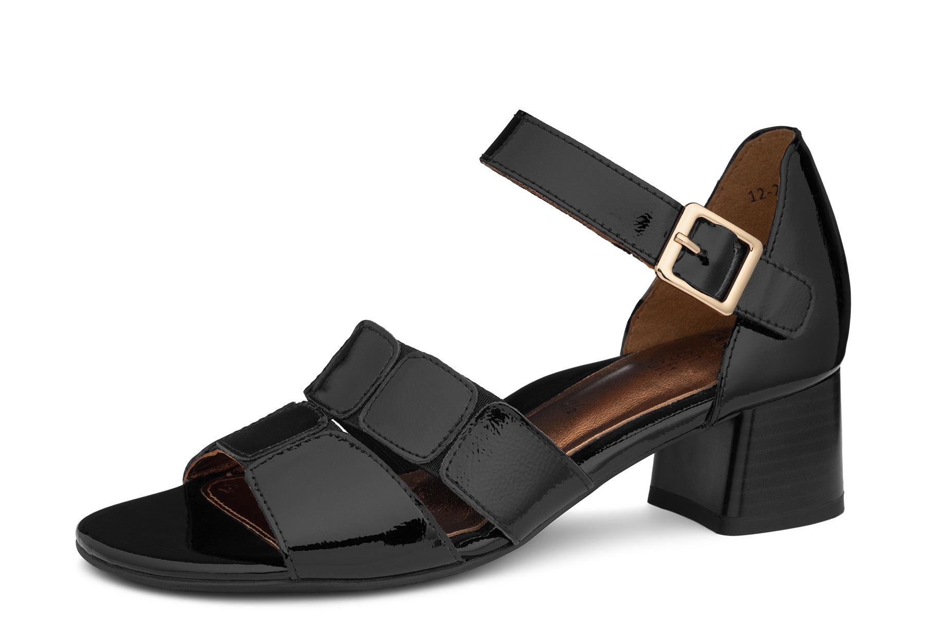 Ara Riva-S High Soft wzór 12-27606 01H wygodne sandały damskie wykonane ze skóry naturalnej - lakierowanej, miękkie, skórzane profilowane wkładki - High Soft; elastyczne, antypoślizgowe podeszwy; stabilne obcasy; tęgość H - polecane na stopy szersze.