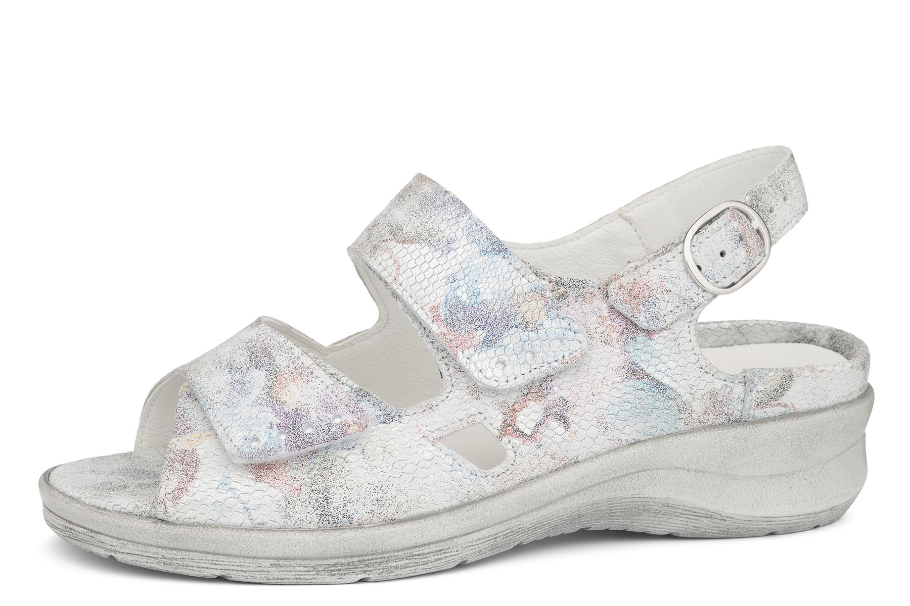 Waldlaufer Merle 811016 306 299 wygodne, zdrowotne damskie sandały wykonane z miękkiej skóry naturalnej; lekkie, elastyczne podeszwy; wyjmowane, skórzane wkładki profilowane na płaskostopie podłużne i poprzeczne; regulacja za pomocą pasków na rzepy; zapinane na pięcie na zatrzask; tęgość M - na stopy bardzo szerokie z haluksami i innymi zwyrodnieniami, zalecane dla cukrzyków.