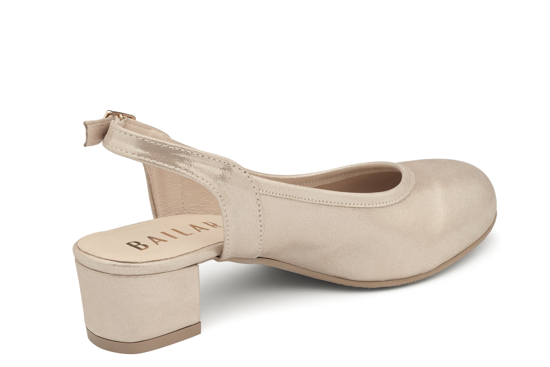 • Bailar Sofia złota Satyna szerokie skórzane damskie czółenka