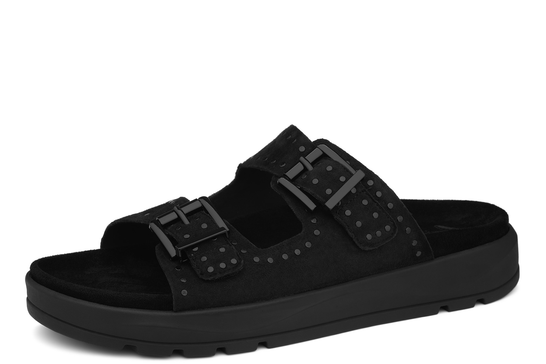 Caprice 9-27201-46 004 wygodne damskie klapki wykonane ze skóry naturalnej - zamszowej; wyjmowane anatomicznie wyprofilowane wkładki które można prać; grubsze, elastyczne antypoślizgowe podeszwy; regulacja paskami na rzep.