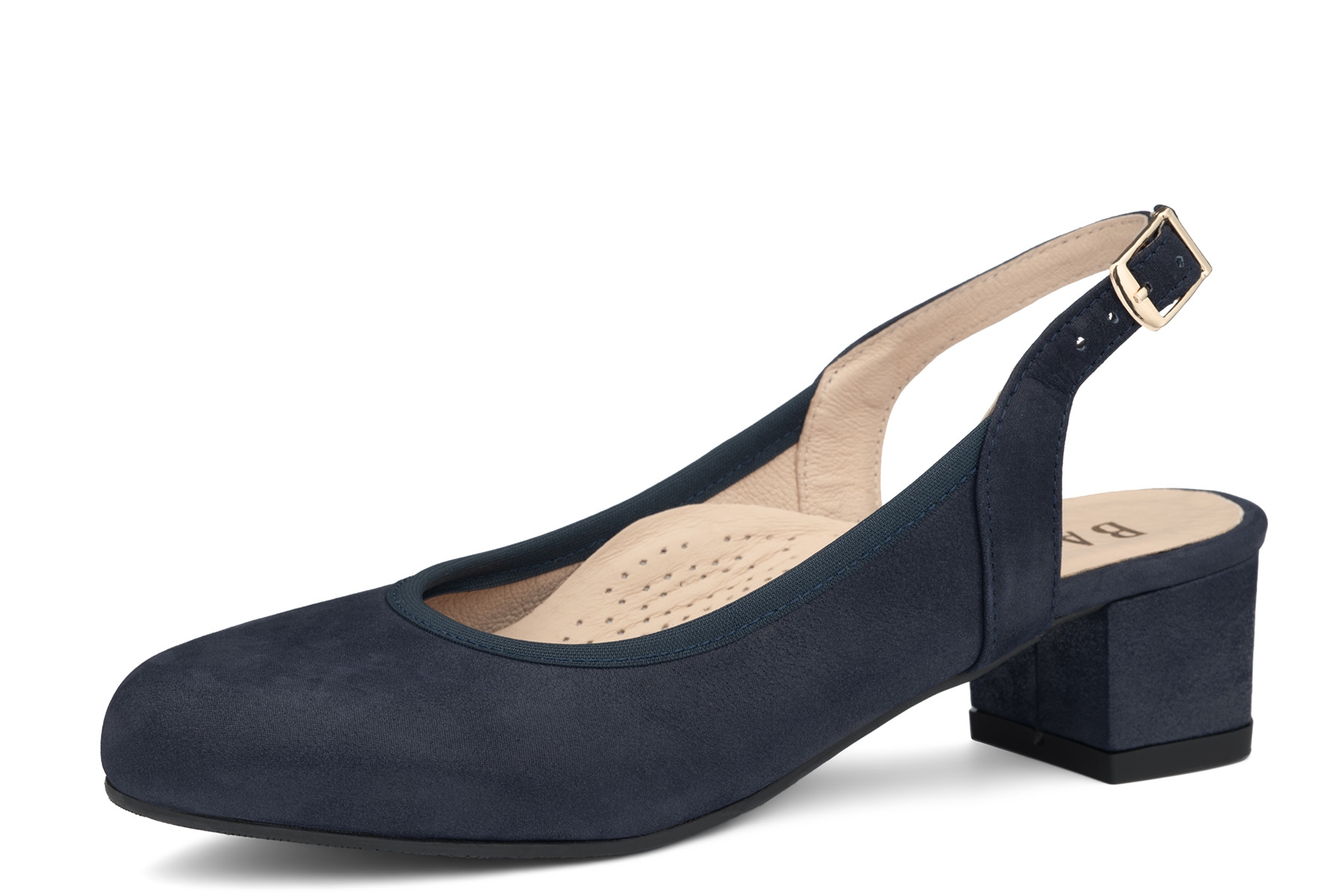 Bailar H-Sofia  wygodne czółenka damskie wykonane z miękkiej skóry naturalnej w kolorze granatowym; profilowane, amortyzujące wkładki z pianki pokryte skórą; elastyczne, antypoślizgowe podeszwy; stabilne obcasy; tęgość H - na stopy szersze.